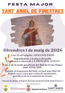 Agenda FESTA MAJOR SANT ANIOL DE FINESTRES 2026 01/05/2026 | Plaça del poble < Entrada AnteriorEntrada Posterior >